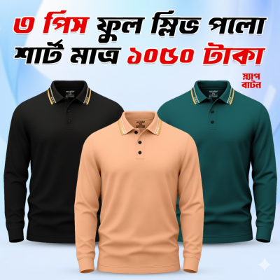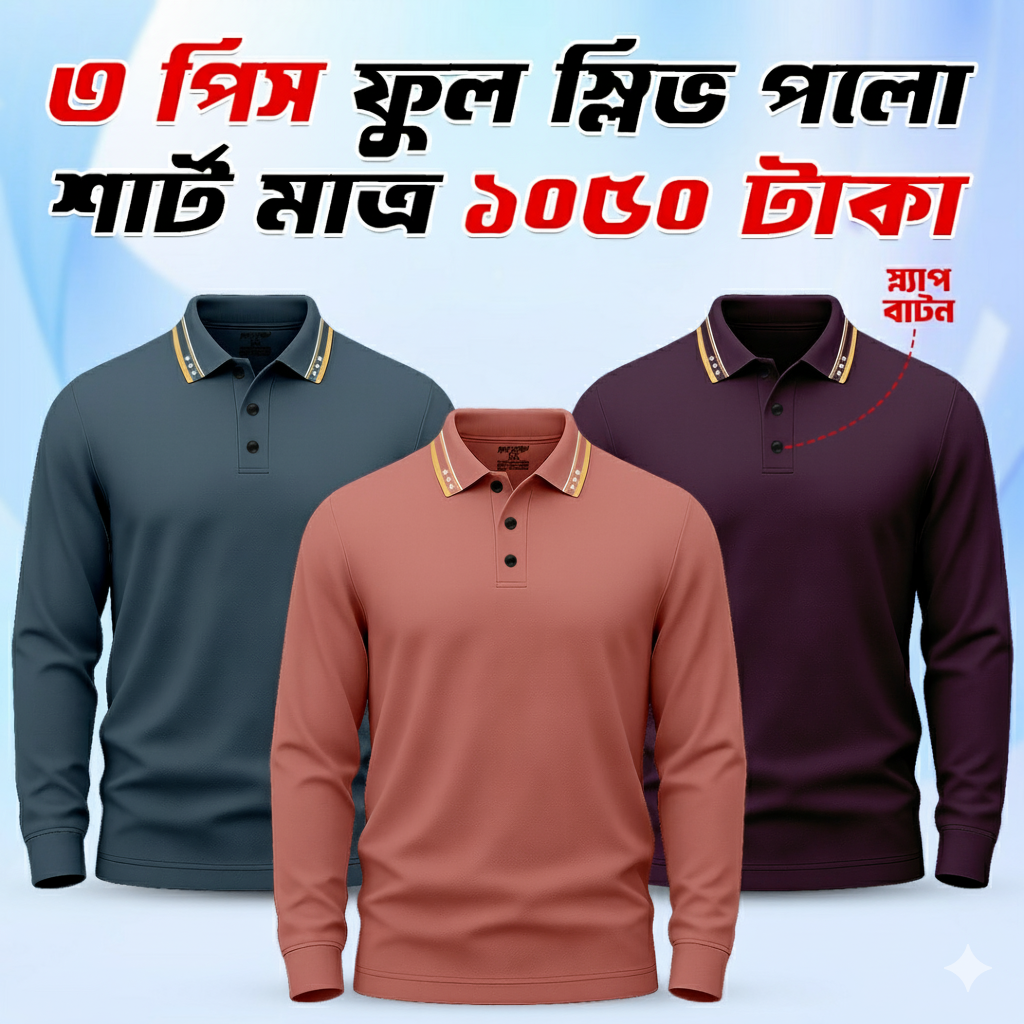 3 pic Combo Full Sleeve Polo T-shirt-(Combo-5)